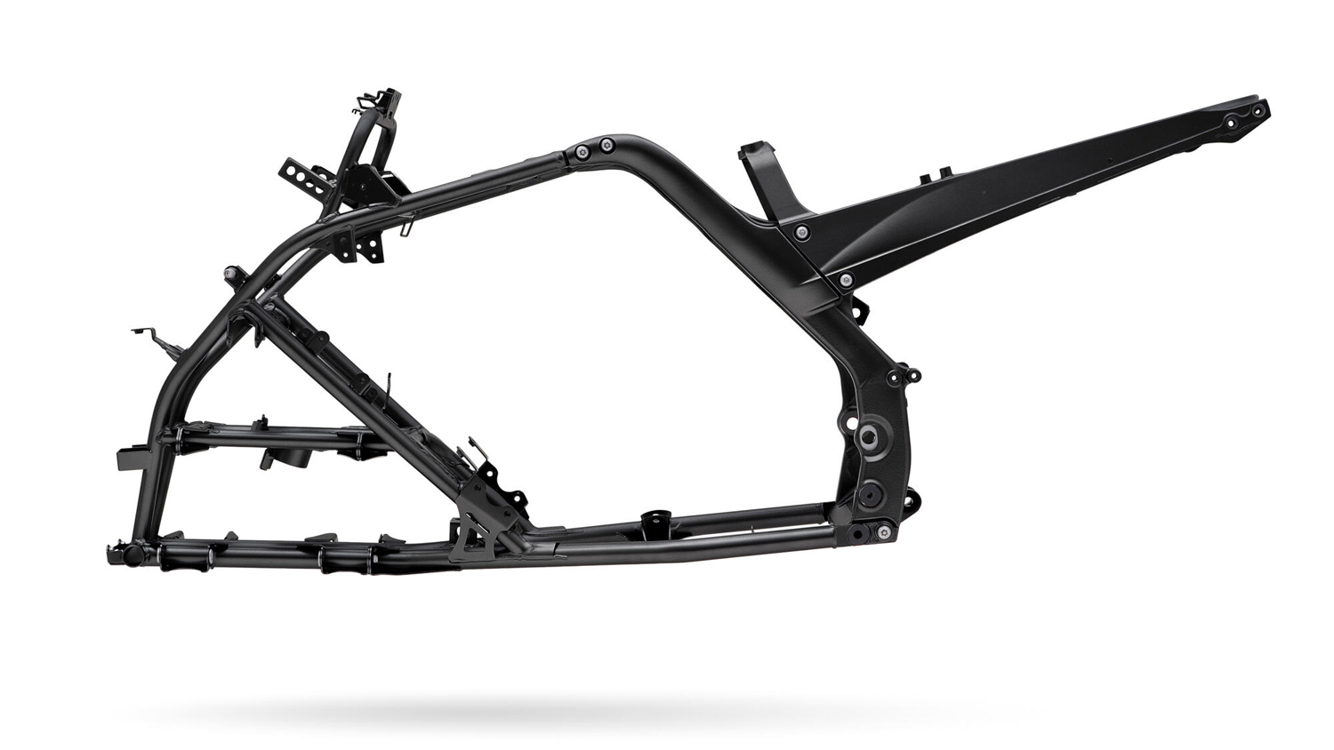 Sellise tugevuse tagamiseks, mis peab vastu igale löögile ja ebatasasusele, ühendab tipptasemel hübriidšassii terasest esiosa alumiiniumist tagaosa ja eemaldatava alusraamiga. Mugavaks ja kontrollitavaks juhitavuseks on kerge valualumiiniumist õõtshark, mis rakendab reguleeritavat amortisaatorit optimeeritud summutusseadistusega.
