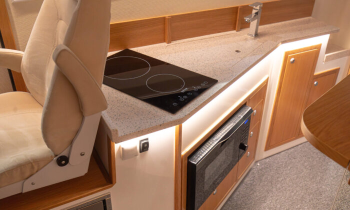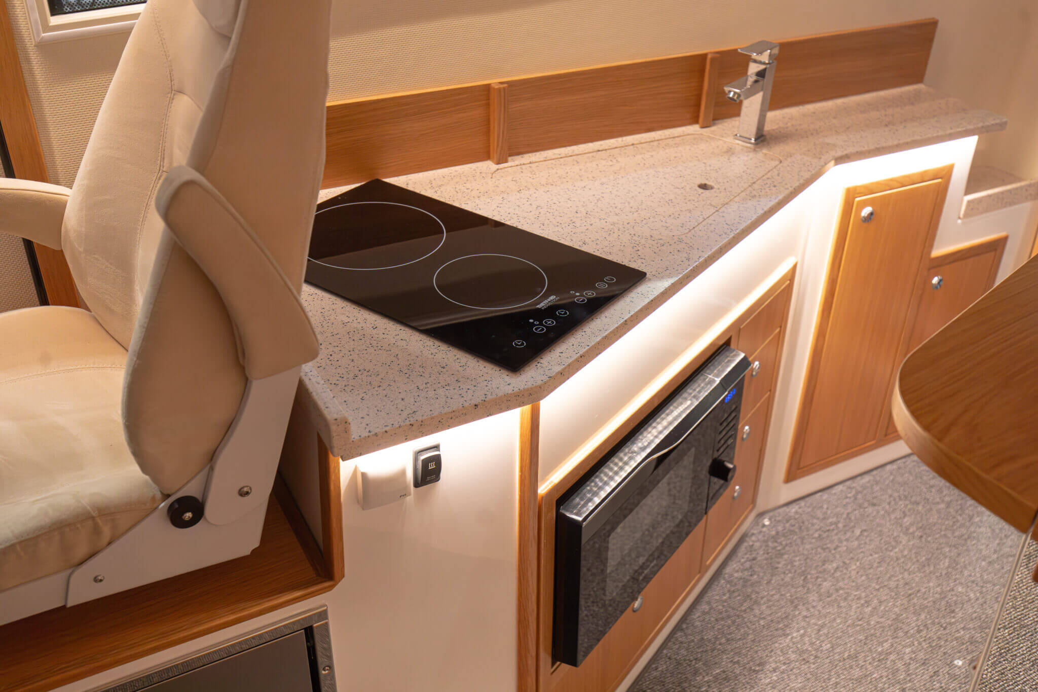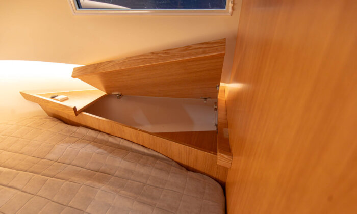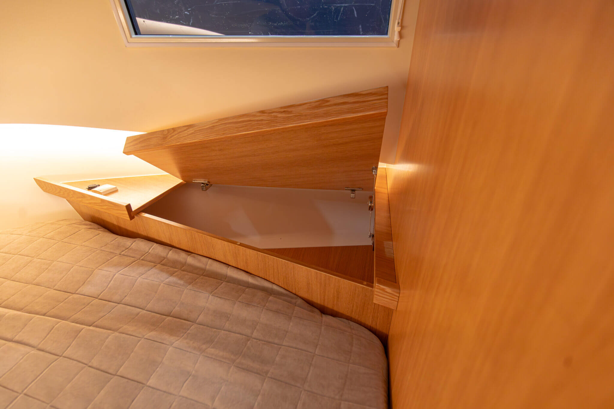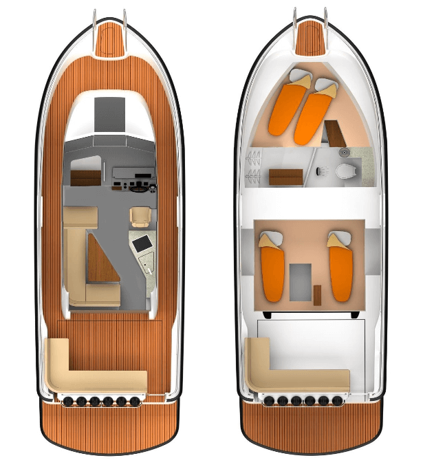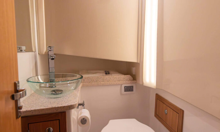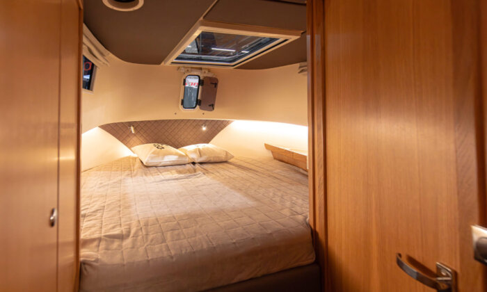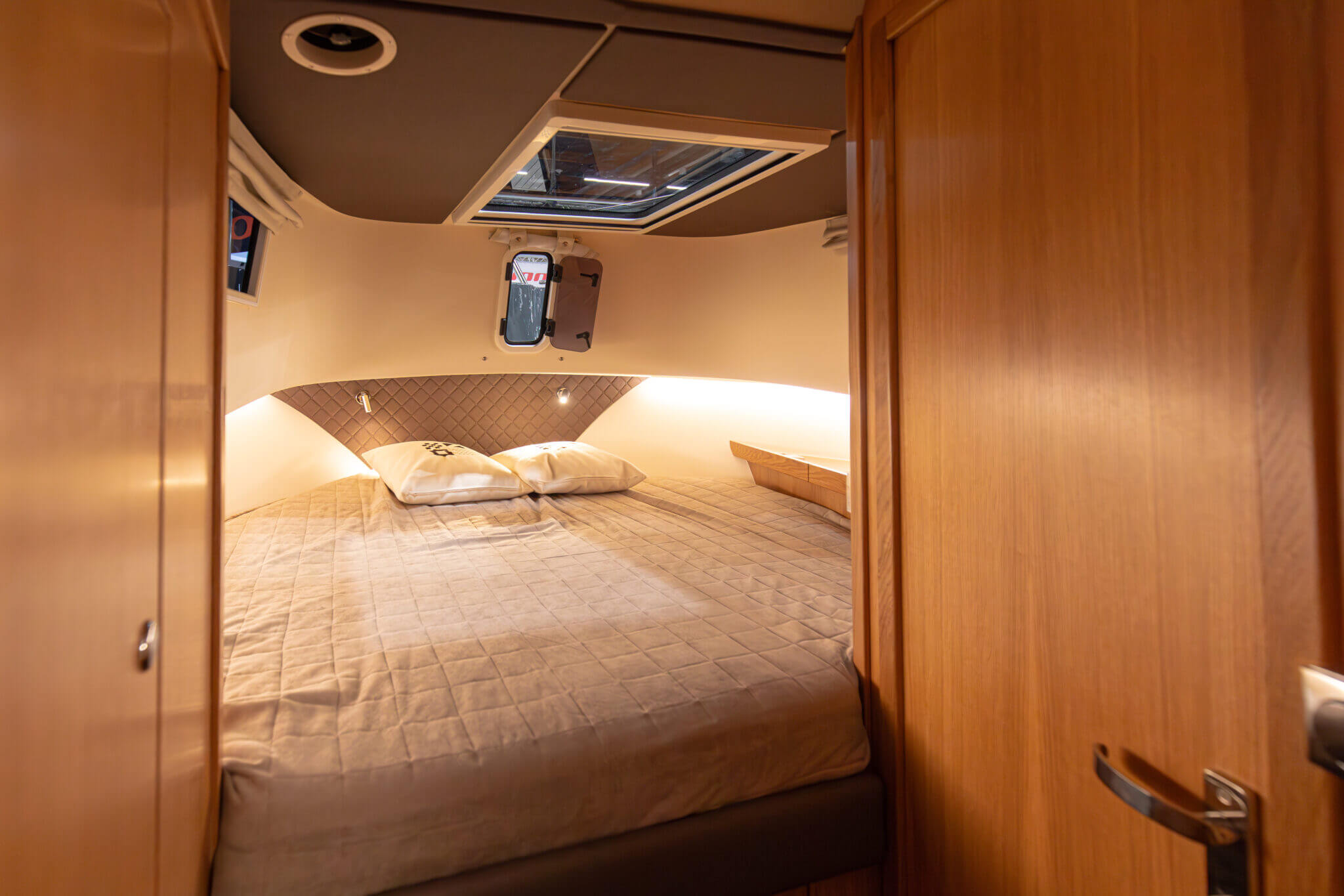 WC koos dušiga, suur ahtritekk ja lai ujumisplatvorm loovad mugava ja funktsionaalse elukeskkonna nii päevaseks ajaveetmiseks kui ka õhtuseks puhkuseks. Walkaround-tekk kolme lükanduksega tagab turvalise liikumise pardal igas olukorras.