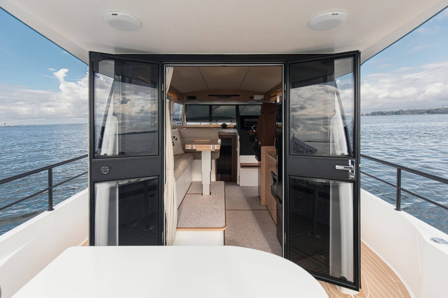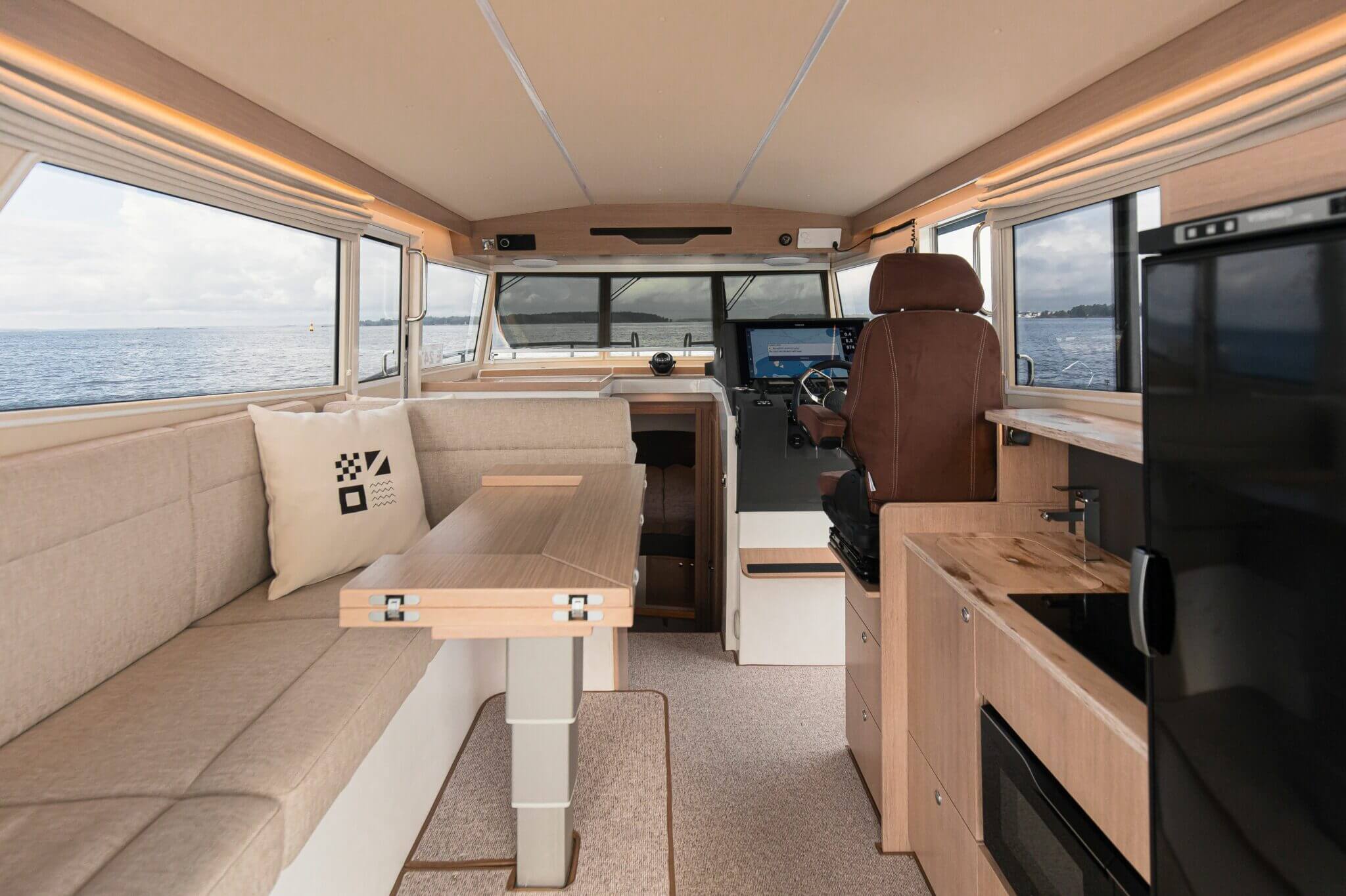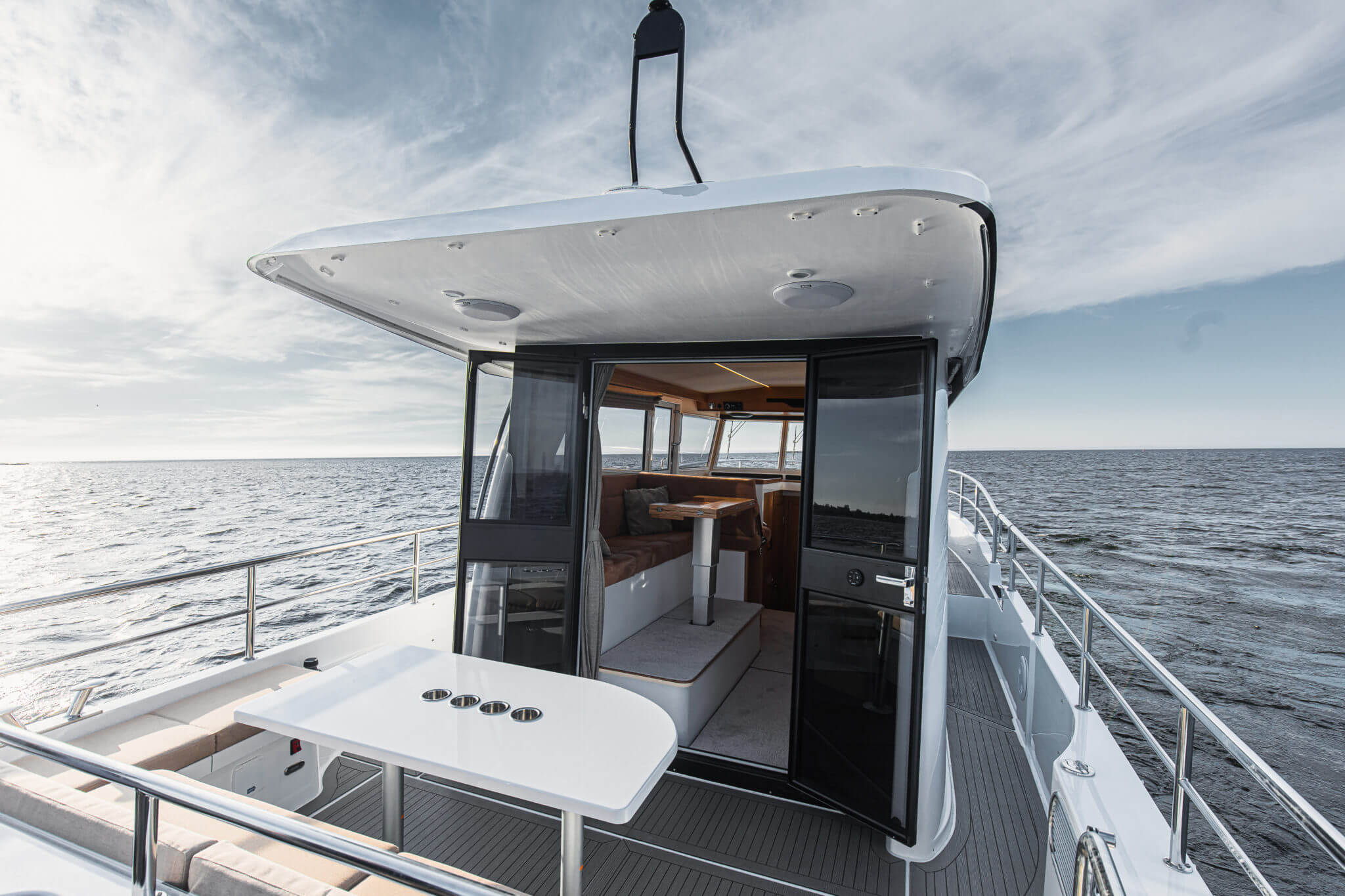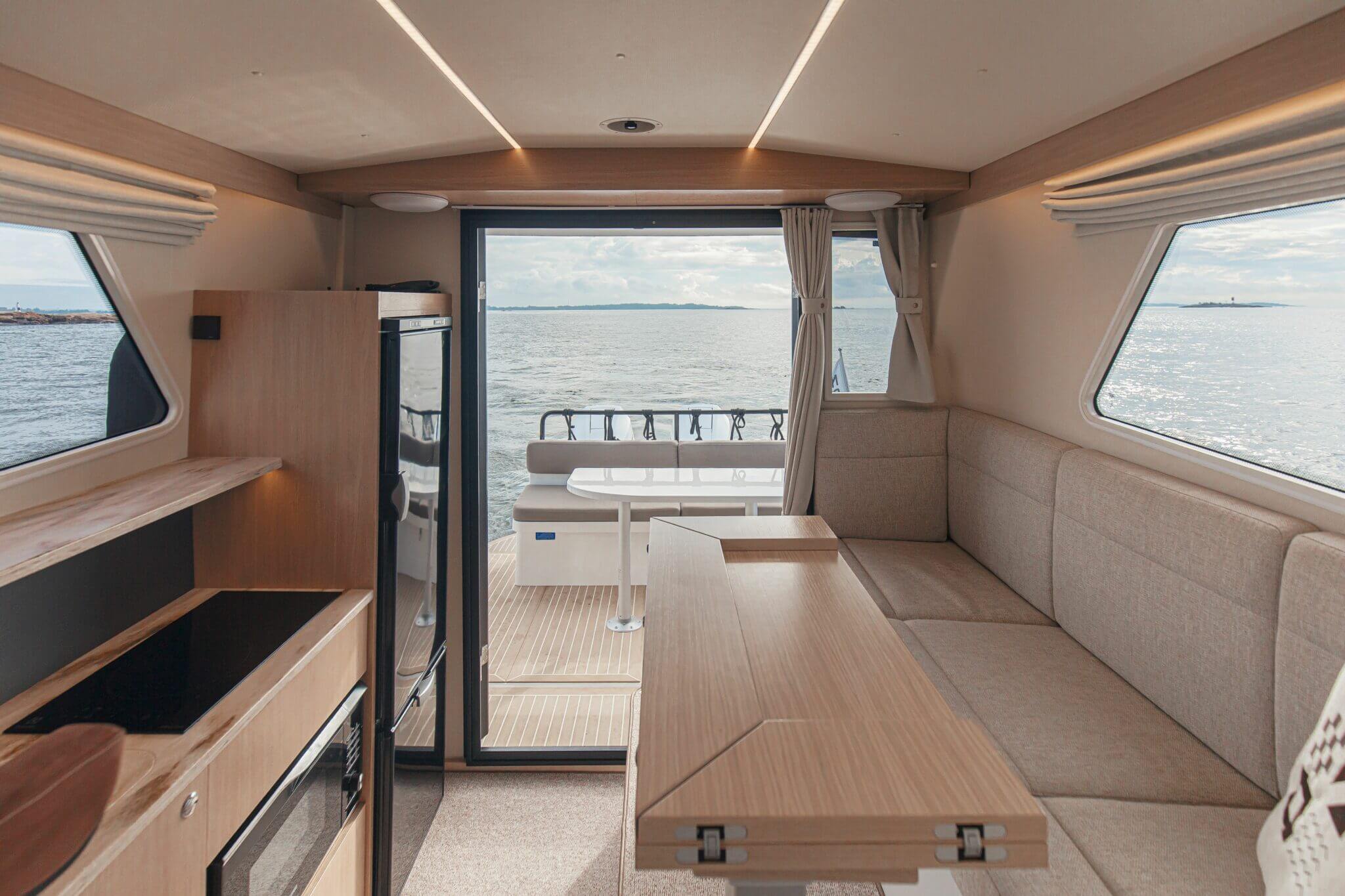 Erinevad planeeringuvõimalused köögi-, tualeti- ja panipaikade alal lubavad paadi kohandada täpselt omaniku soovide ja kasutusvajaduste järgi. Salongi läbiv panoraamvaade ja prantsuse stiilis uksed avanevad otse avarale ahtritekile, mis loob ideaalse koha söömiseks, ajaveetmiseks ja merel lõõgastumiseks.