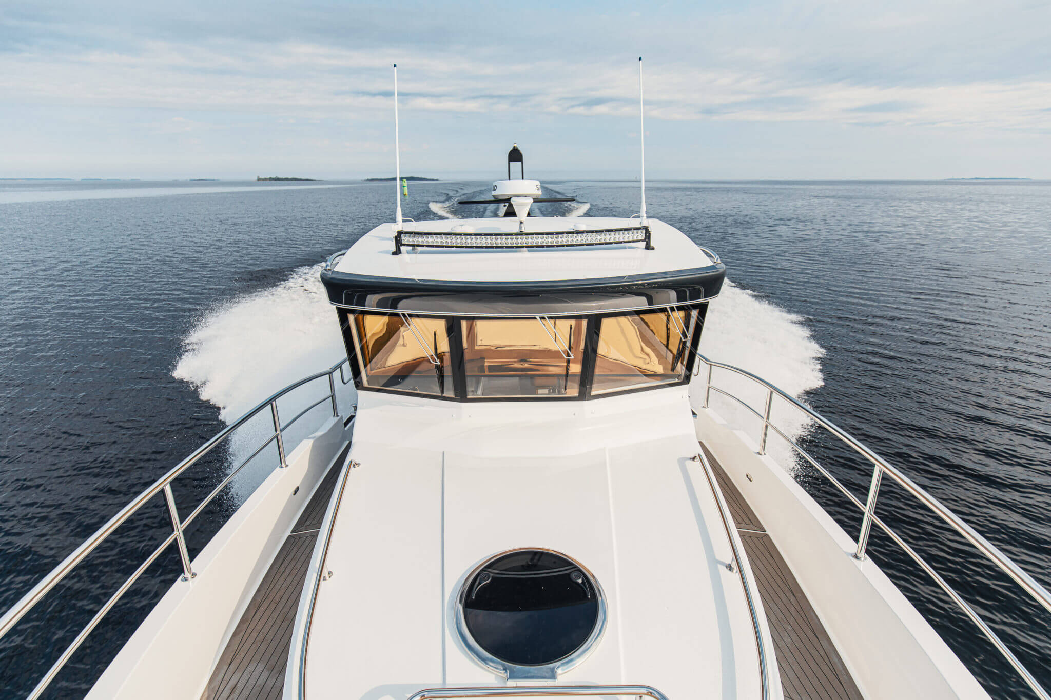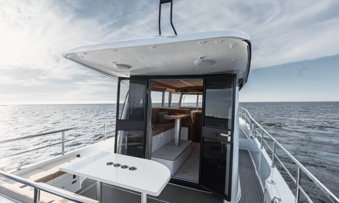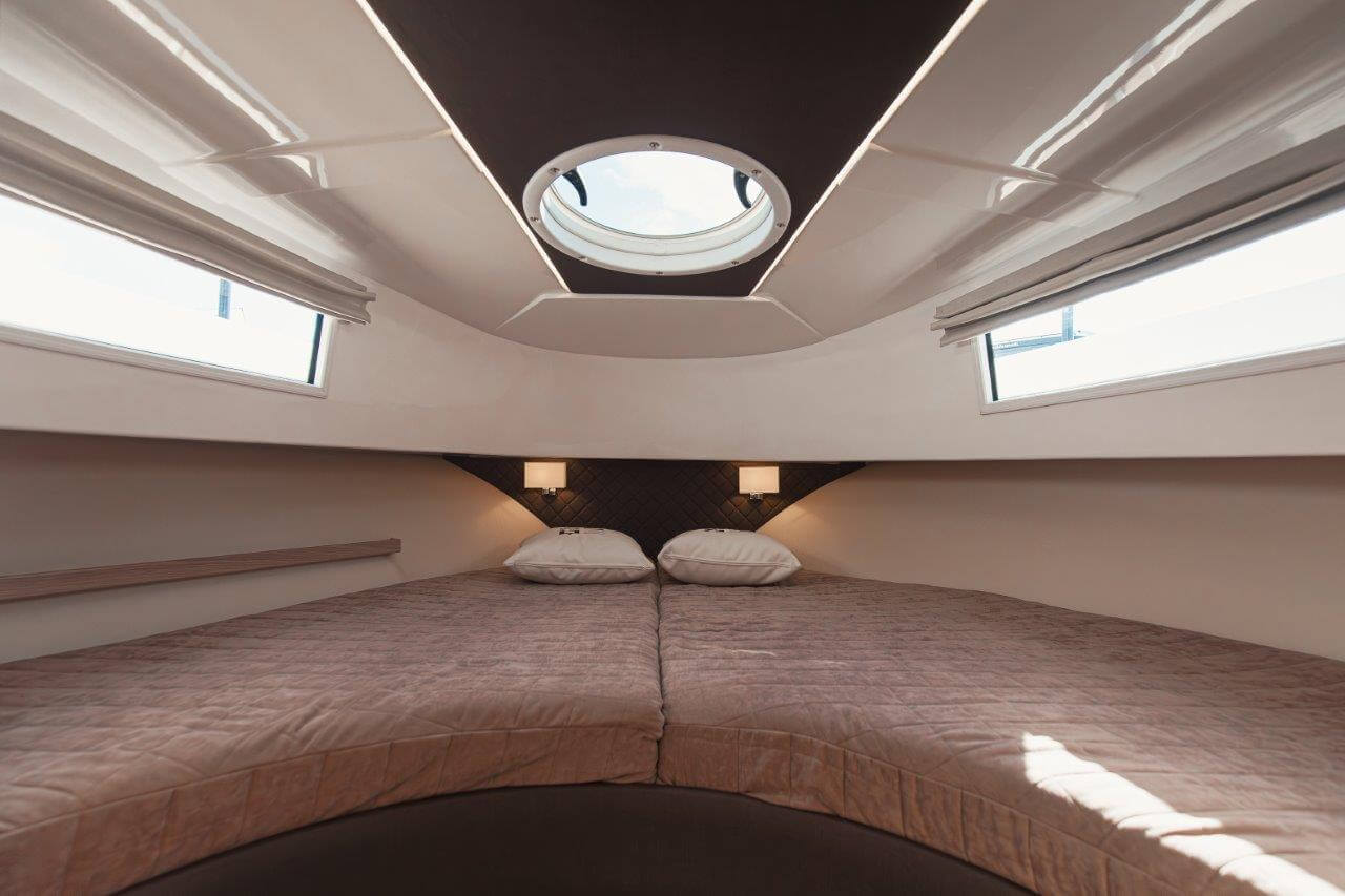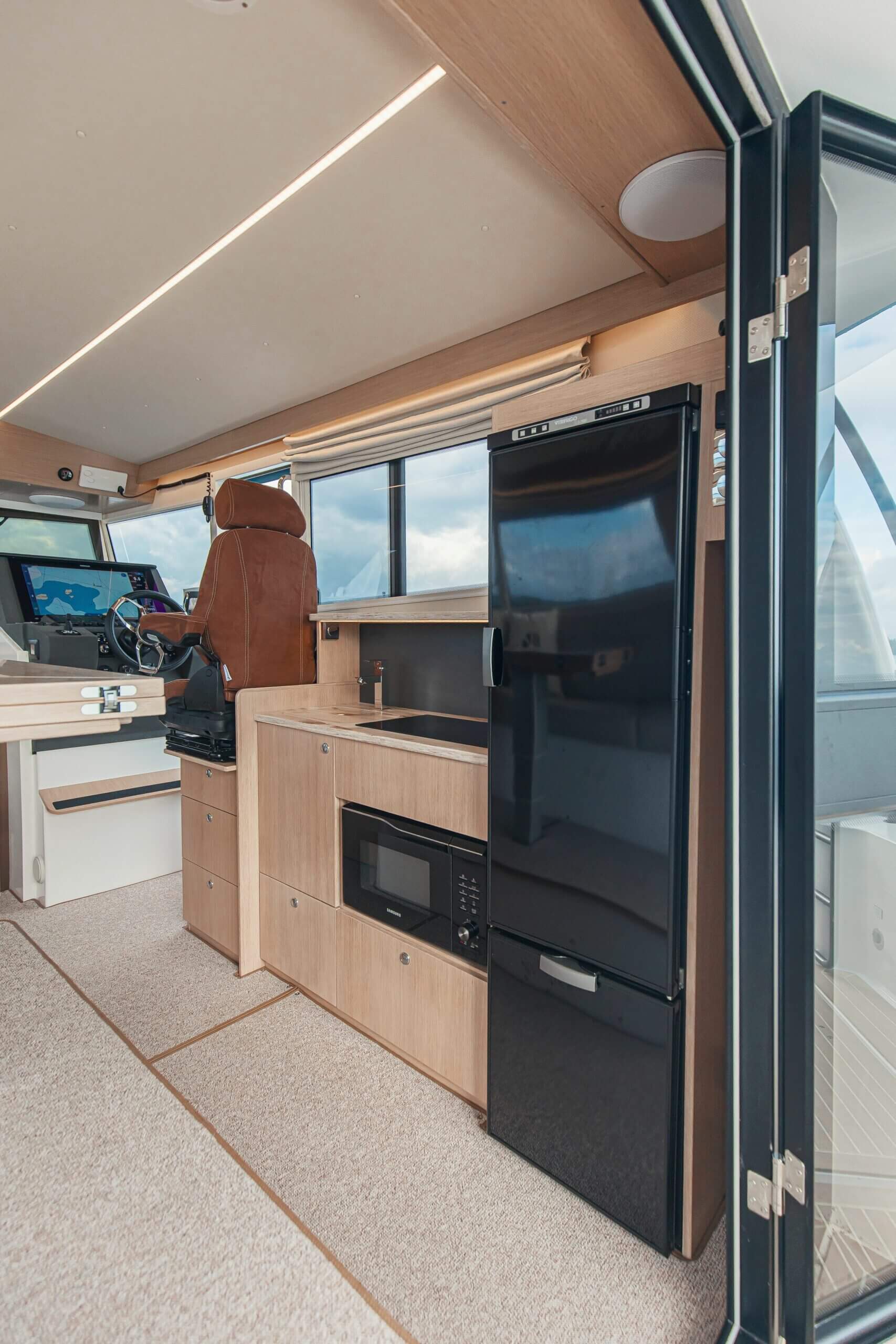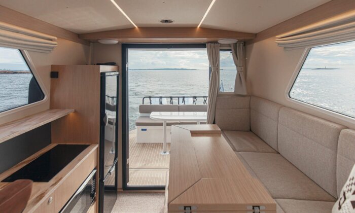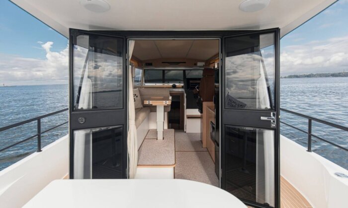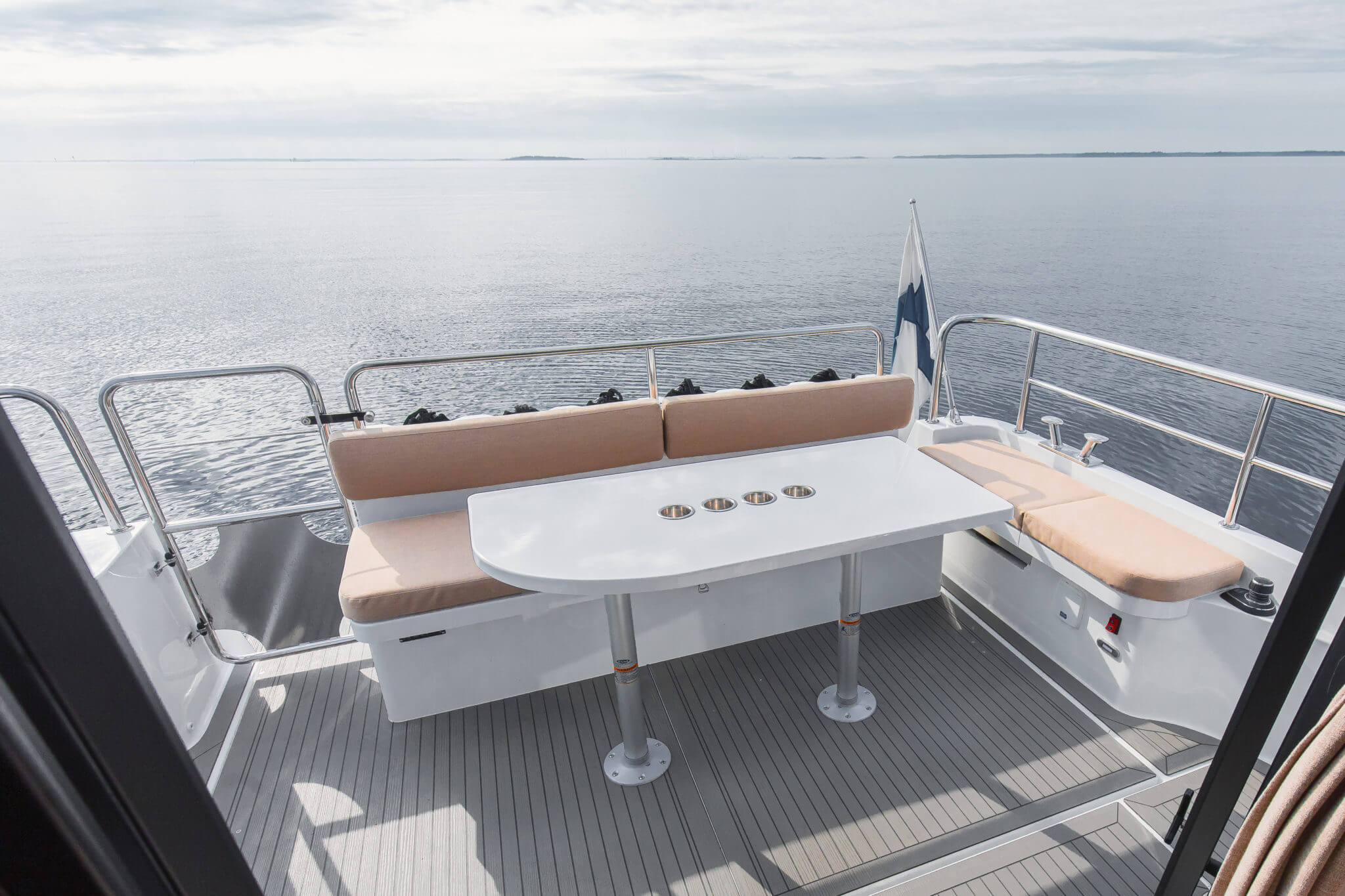 Erinevad planeeringuvõimalused köögi-, tualeti- ja panipaikade alal lubavad paadi kohandada täpselt omaniku soovide ja kasutusvajaduste järgi. Salongi läbiv panoraamvaade ja prantsuse stiilis uksed avanevad otse avarale ahtritekile, mis loob ideaalse koha söömiseks, ajaveetmiseks ja merel lõõgastumiseks.