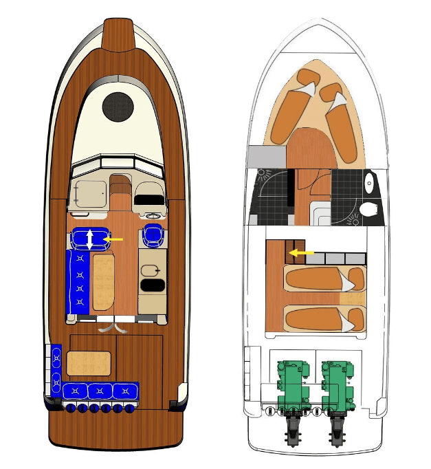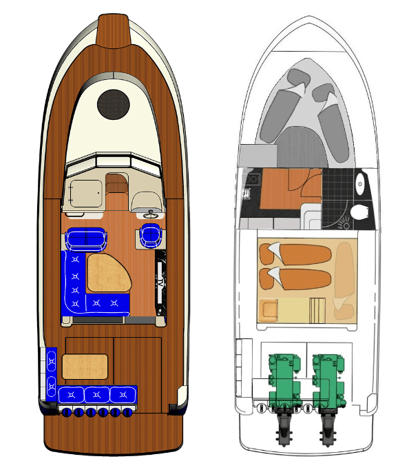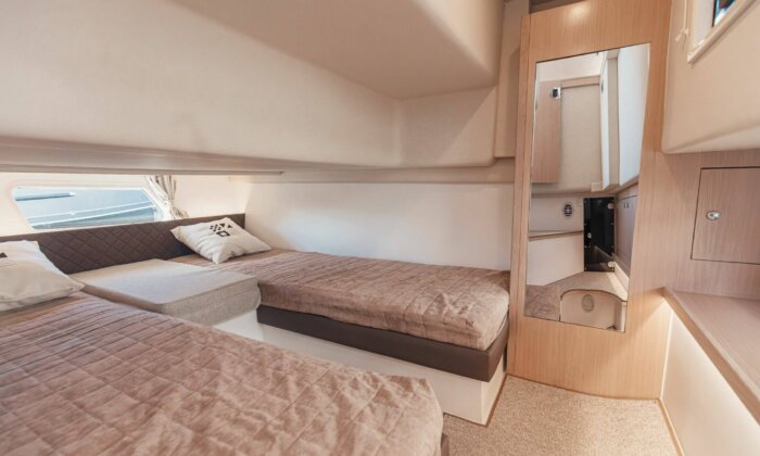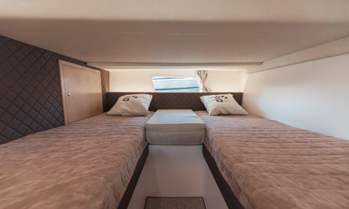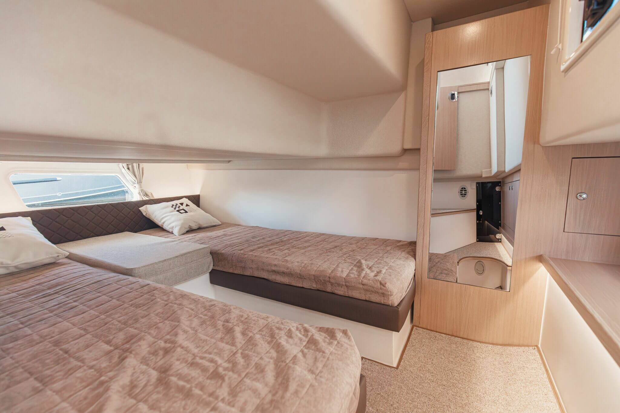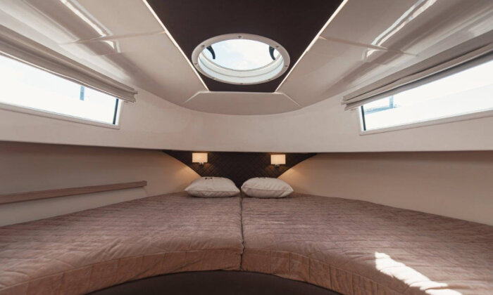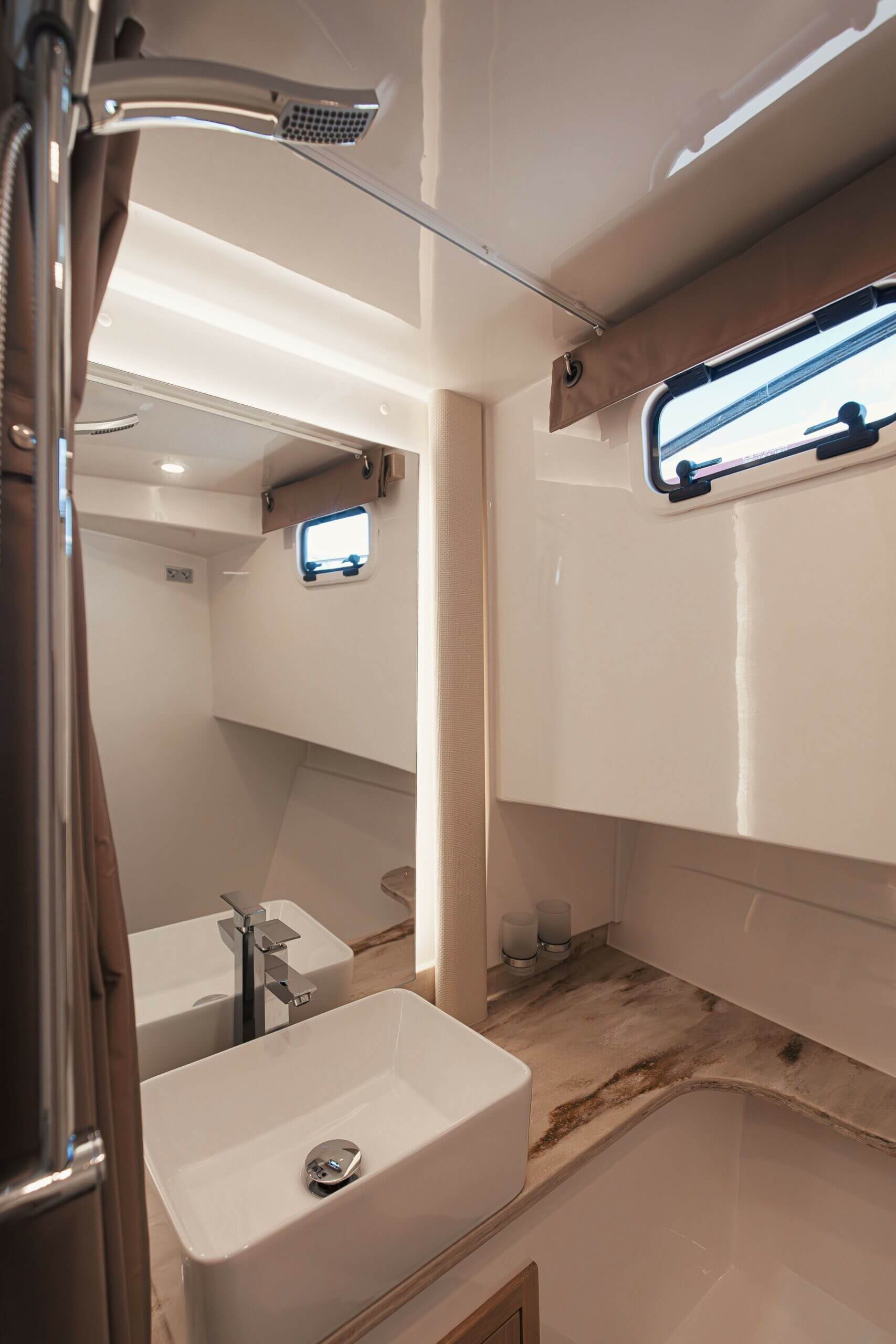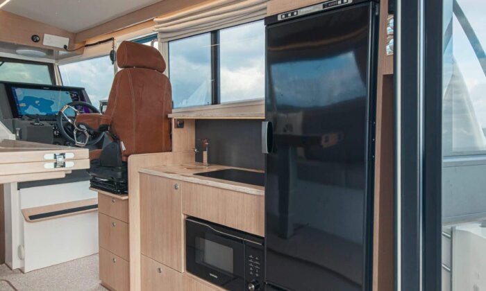 Erinevad planeeringuvõimalused köögi-, tualeti- ja panipaikade alal lubavad paadi kohandada täpselt omaniku soovide ja kasutusvajaduste järgi. Salongi läbiv panoraamvaade ja prantsuse stiilis uksed avanevad otse avarale ahtritekile, mis loob ideaalse koha söömiseks, ajaveetmiseks ja merel lõõgastumiseks.