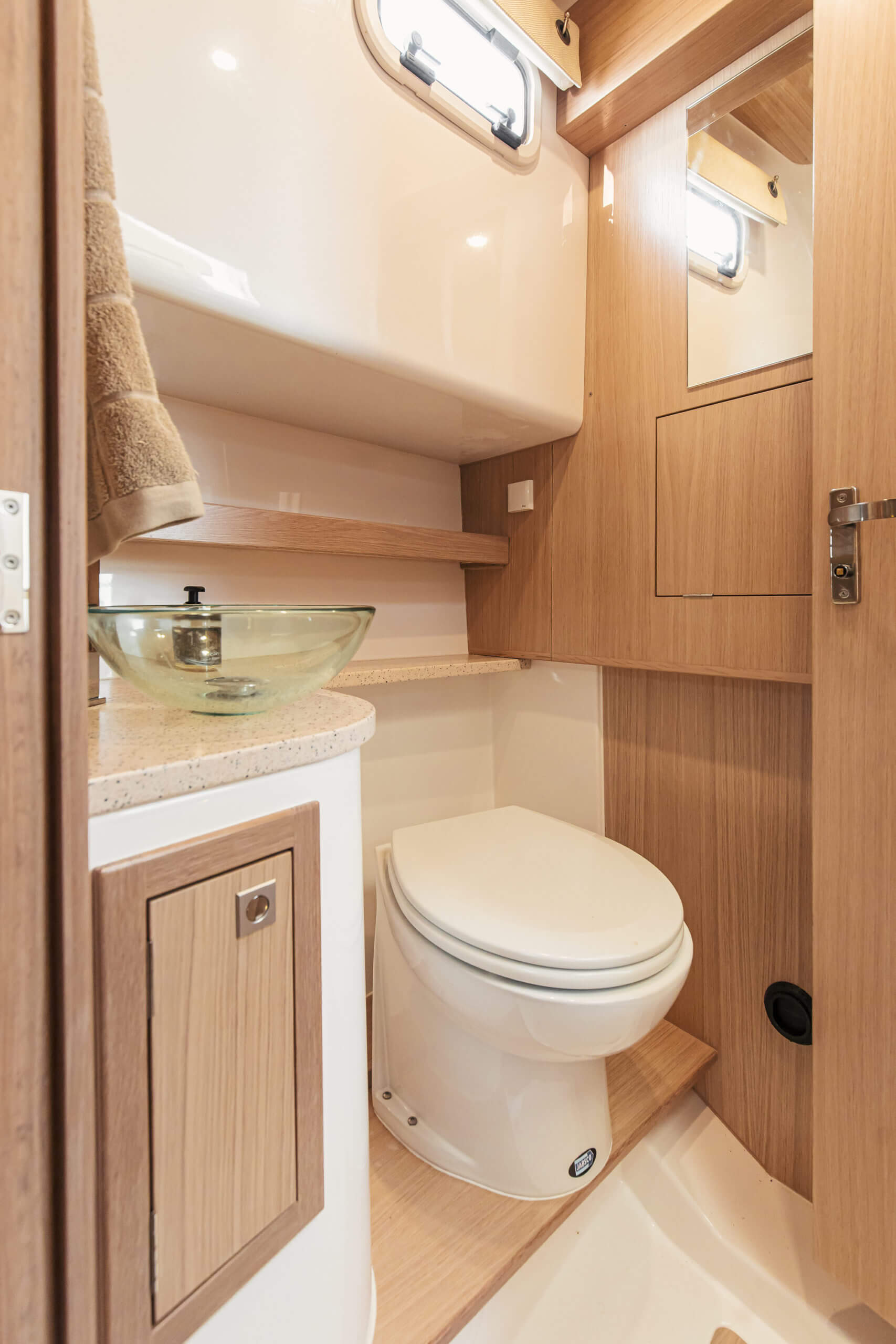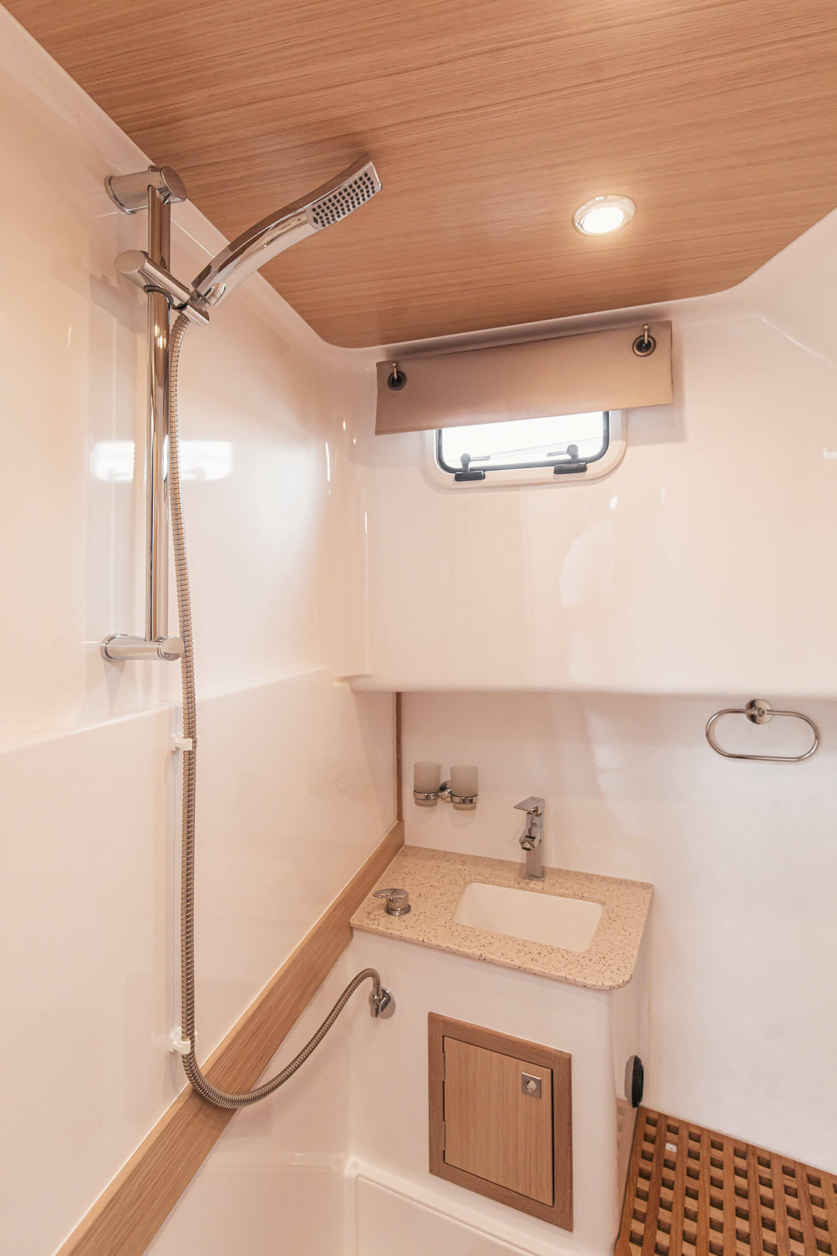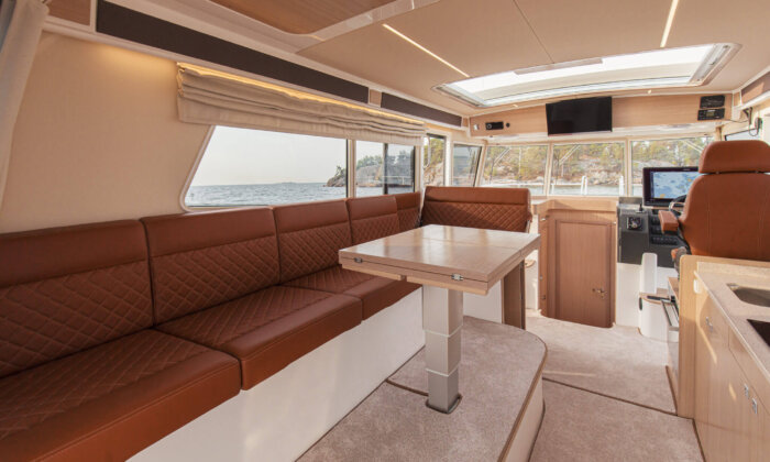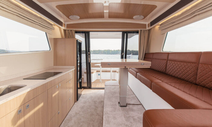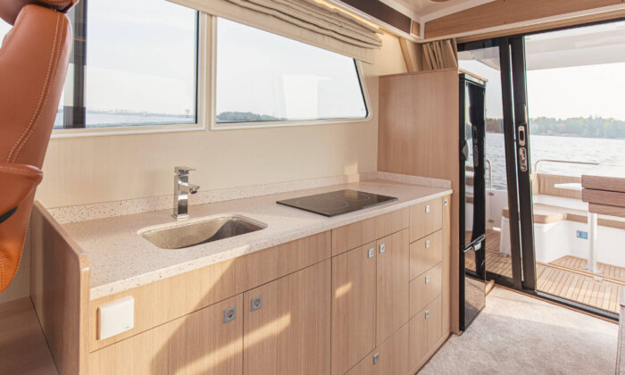 Avar köögiala alumisel tekil, sujuvalt ühenduv luksusliku salongiga, pakub ruumi nii igapäevasteks tegevusteks kui ka meelelahutuseks. Suur ahtritekk ja elegantselt kujundatud sotsiaalala sobivad suurepäraselt nii päevaseks lõõgastumiseks kui õhtusteks hetkeks merel. Soovi korral on saadaval ka flybridge – lisades mudelile sportlikkust, parem nähtavus ja veelgi rohkem ruumi ühiseks ajaveetmiseks.