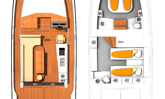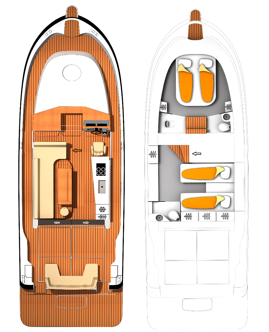• flybridge’i võimalus lisab ruumi, nähtavust ja sportlikkust
