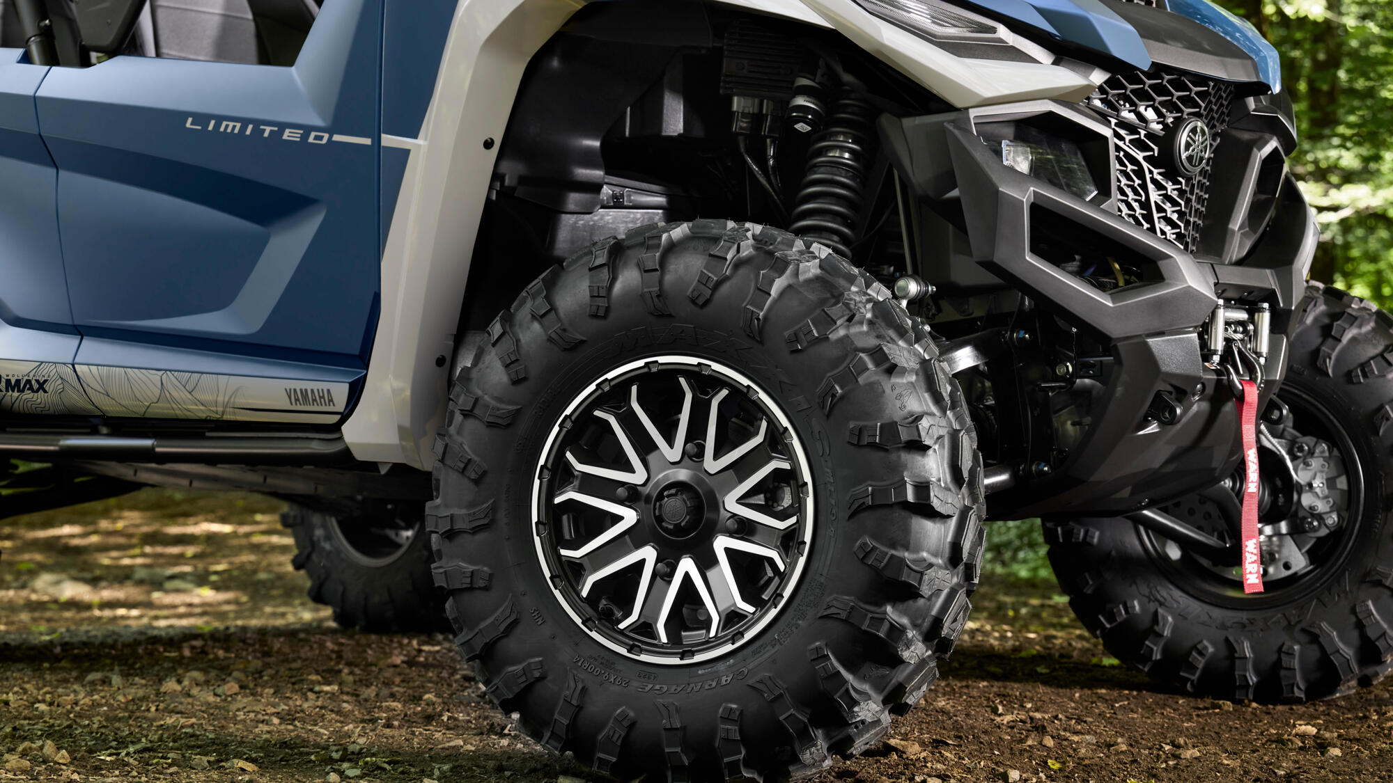 Rohmakatel 14-tollistel alumiiniumvelgedel on 29-tollised Carnage-rehvid, mis on paigutatud ruudukujuliselt, nii et kaasas on vaja kanda ainult ühte varurehvi. Need spetsiaalsed radiaalrehvid on välja töötatud spetsiaalselt RMAXI jaoks, et tagada täpne juhitavus ja mugav, kuid vastupidav külgseinatunne. Turvisemustri konstruktsioon tagab suurepärase veojõu igal maastikul.