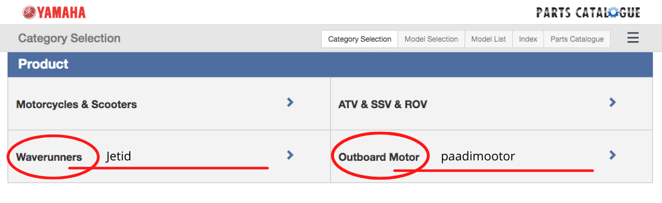 Nüüd on võimalik väga lihtsalt ise leida endale vajalik paadimootori varuosa Yamaha Parts kataloogist. Leia varuosa Part No., kopeeri see allolevasse vormi ja saada meile. Hinna ja saadavuse kohta vastame sulle esimesel võimaluse. Täpse juhendi, kuidas kataloogis liikuda, leiad veidi alt poolt. Juhul, kui ei õnnestu leida otsitavat varuosa, siis helista või kirjuta meile. Leiame kindlasti lahenduse.
